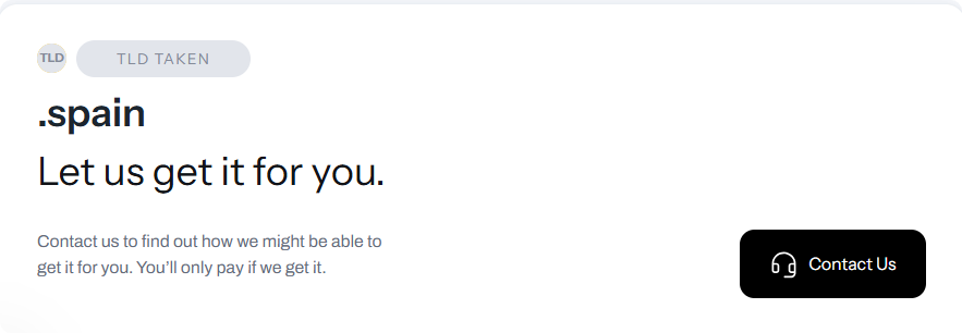 Note: The .spain TLD is already taken. However, if you would like to know the asking price, please click on the “Contact Us” tab.