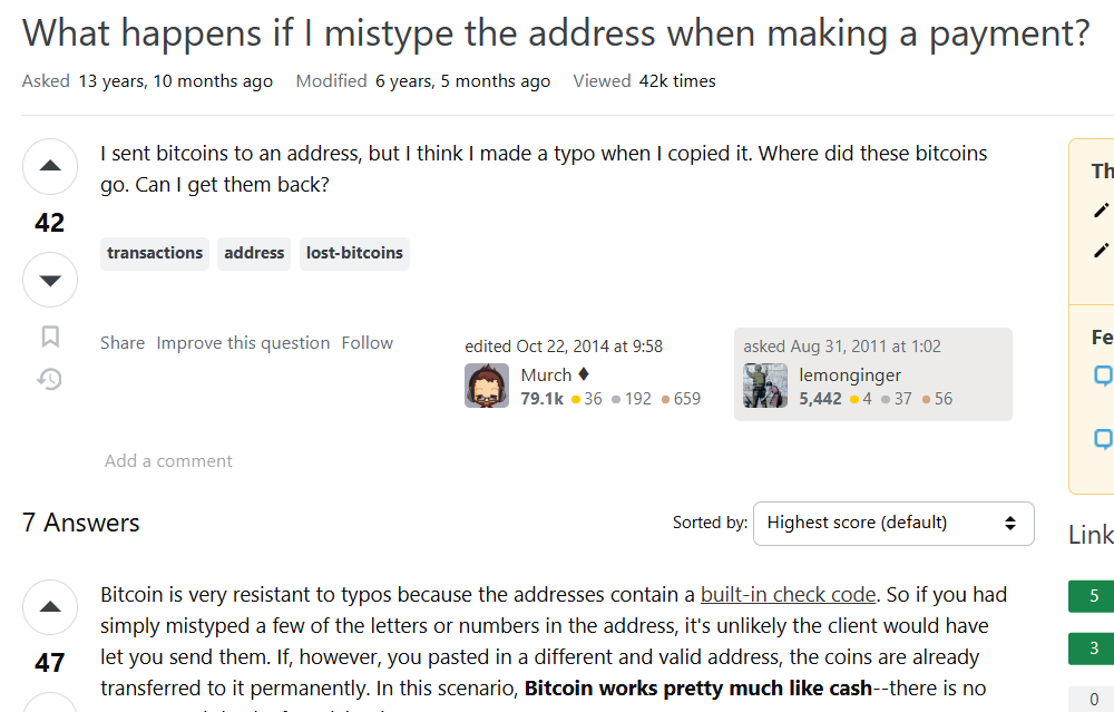“So I was sending some bitcoin, copied and pasted the address … Turns out I sent it to the wrong address … The transaction is complete. Is my money gone forever?”